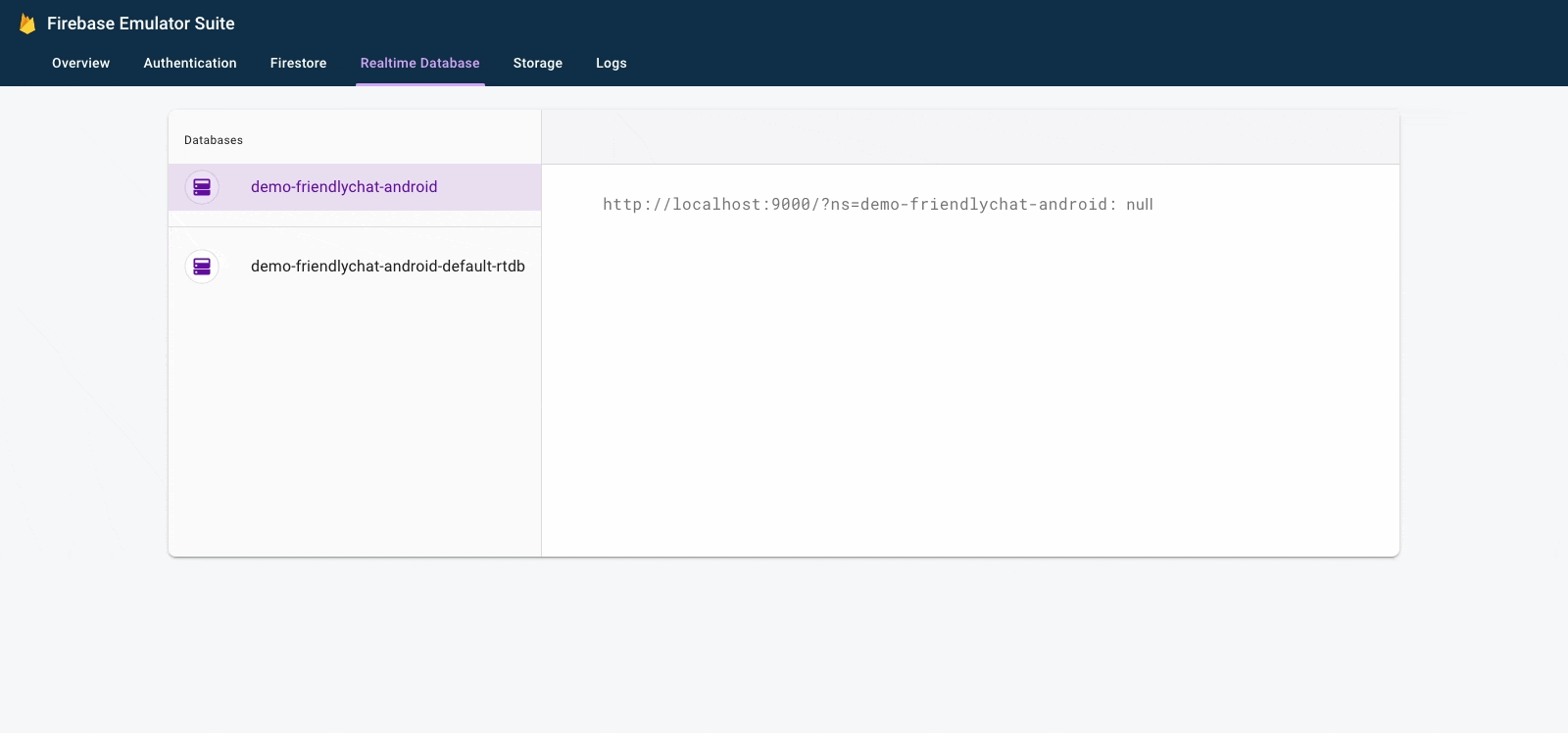 $ firebase emulators:start --project=demo-friendlychat-android