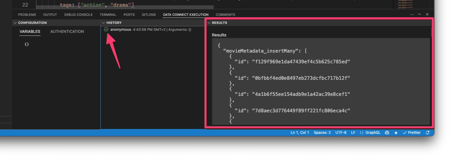- وقتی از تغییرات راضی بودید، آنها را با استفاده از جریان شروع شده توسط firebase dataconnect:sql:migrate