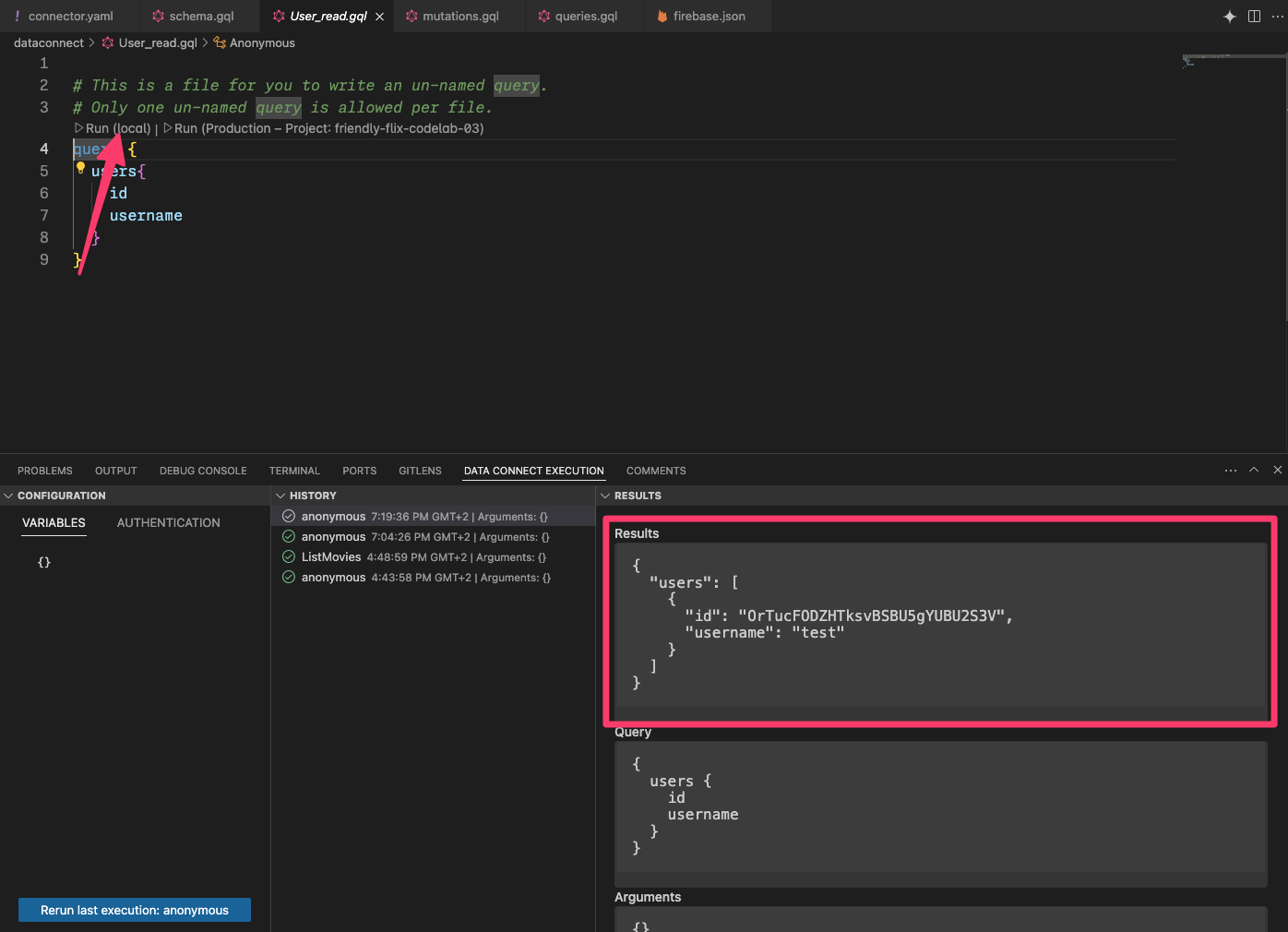 - احراز هویت کاربر را پیاده سازی کنید و آن را با Firebase Data Connect ادغام کنید تا داده های کاربران خود را ایمن کنید.