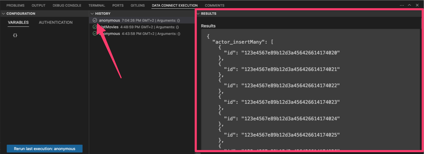 现在,您可以像使用本地模拟器一样,在 Firebase Data Connect 面板中点击“运行(生产)”,将数据添加到生产环境中。