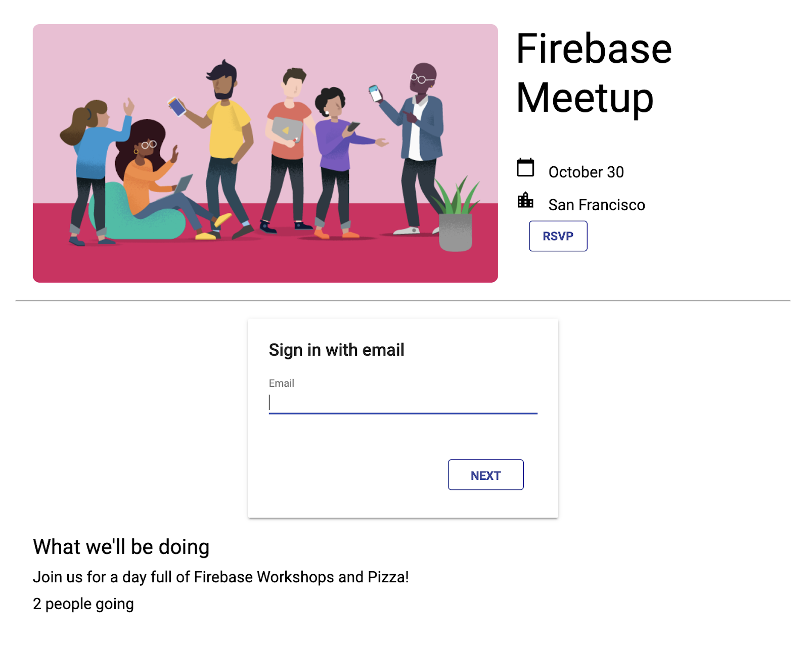 Ahora que agregaste Firebase a la app, puedes configurar un botón de confirmación de asistencia que registre a las personas con Firebase Authentication.