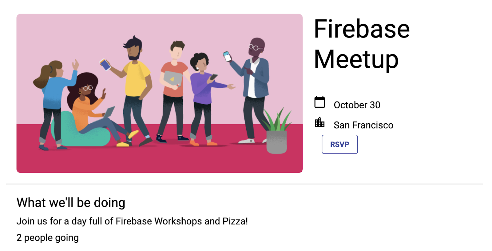 En este codelab, aprenderás algunos conceptos básicos de Firebase para crear aplicaciones web interactivas. Compilarás una app de chat de RSVP de eventos y libro de visitas con varios productos de Firebase.