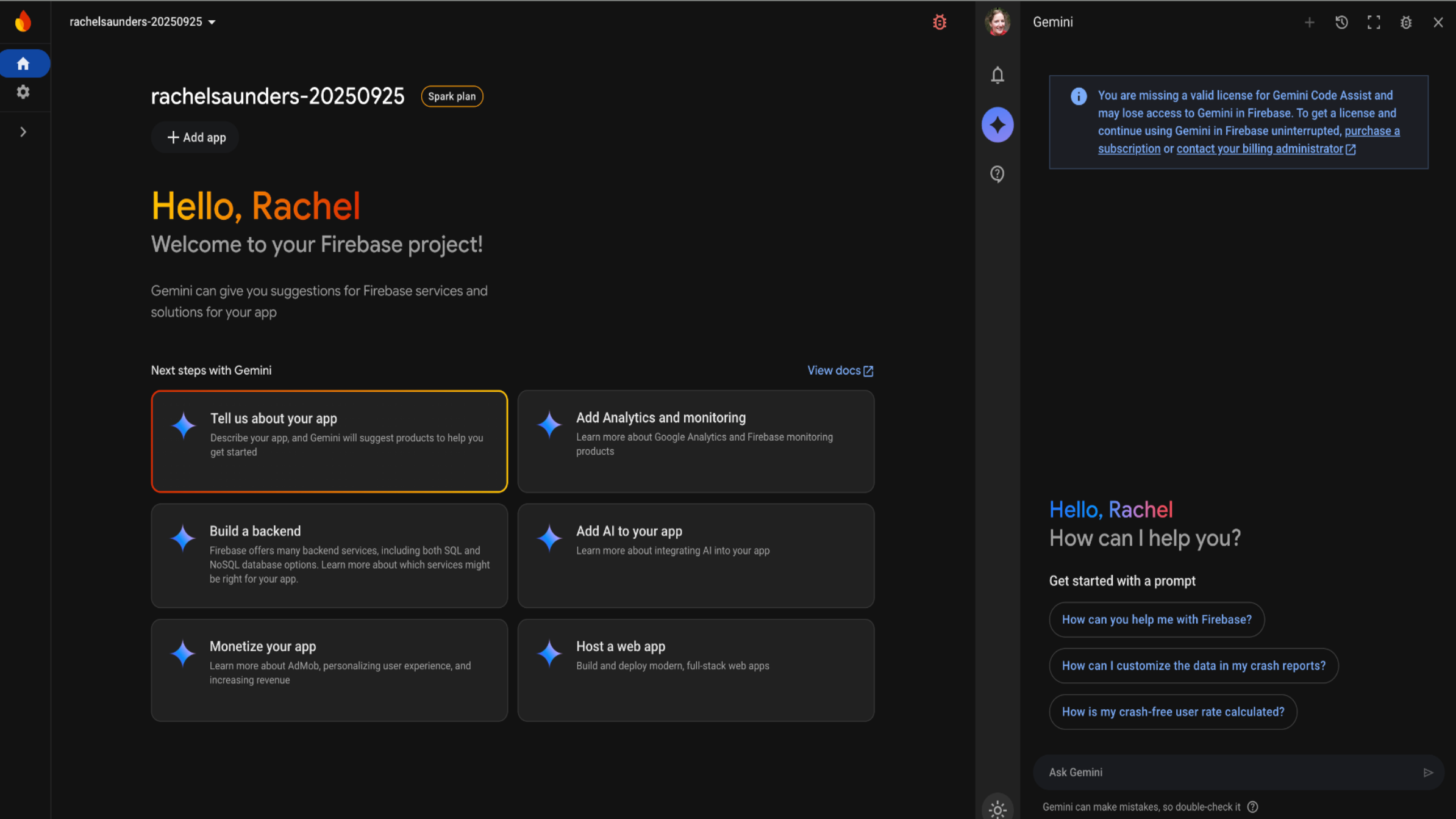 使用 Firebase 服务和界面(例如控制台)中 AI 赋能的协作助理,简化开发流程。